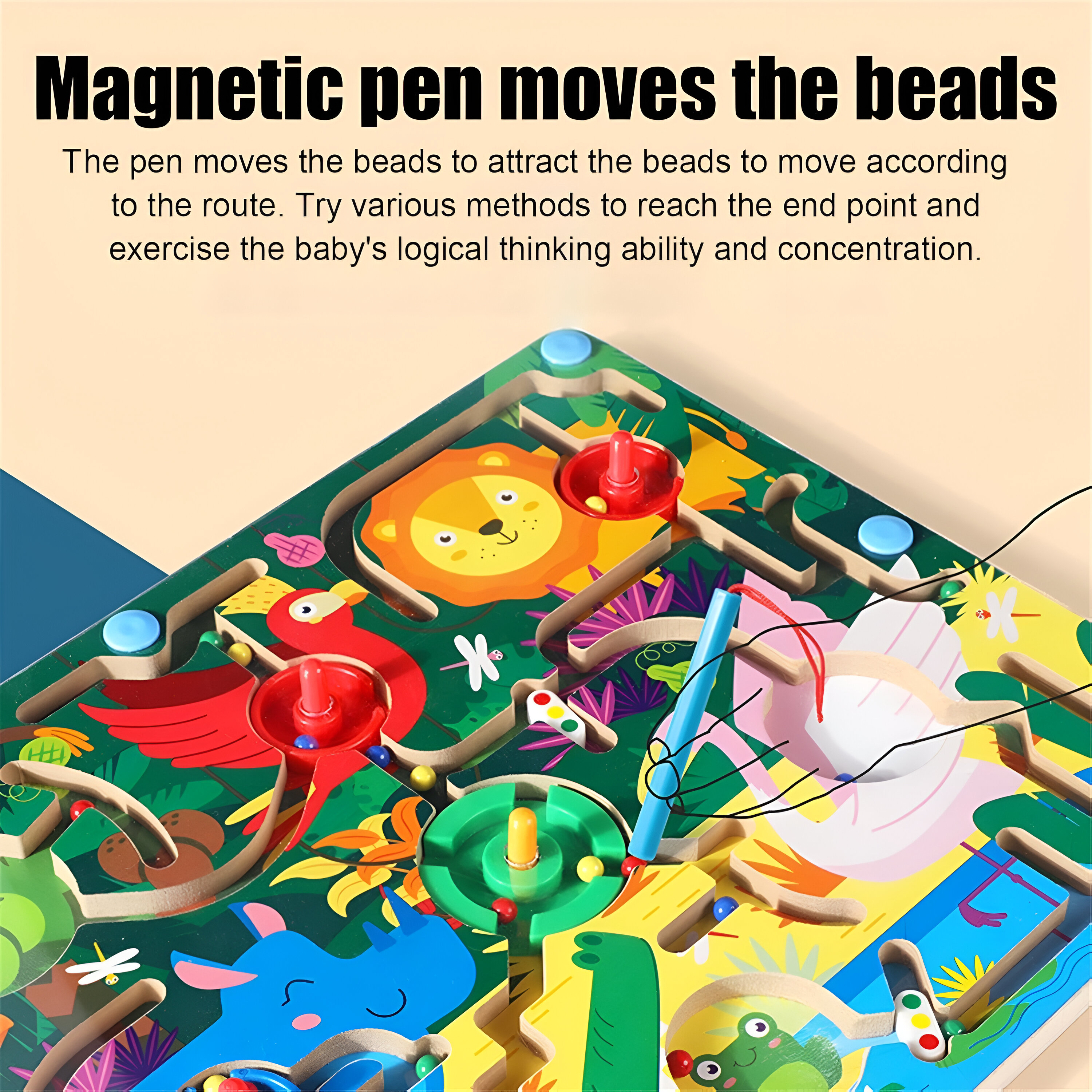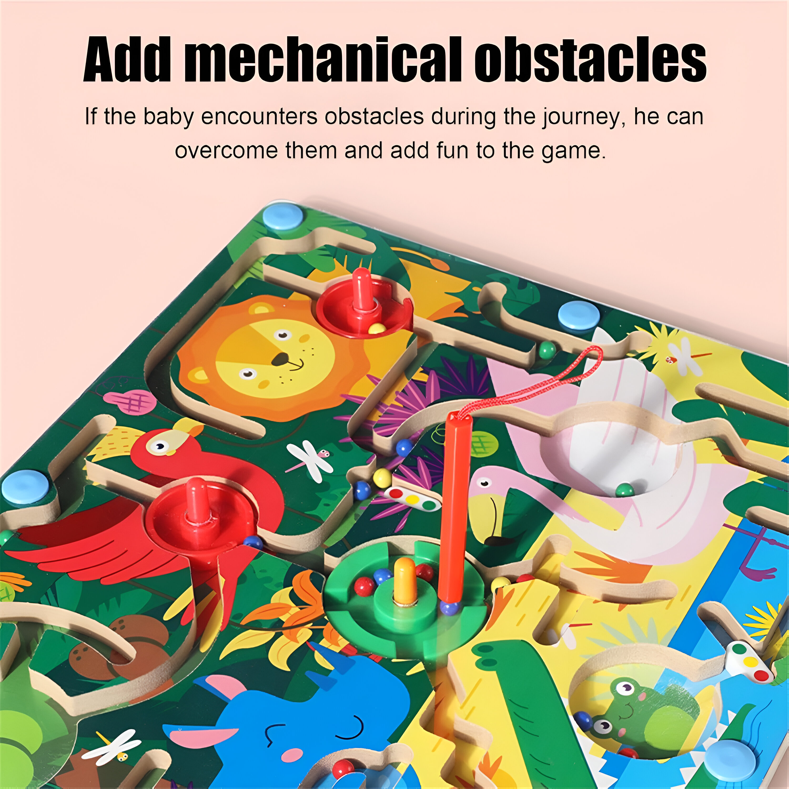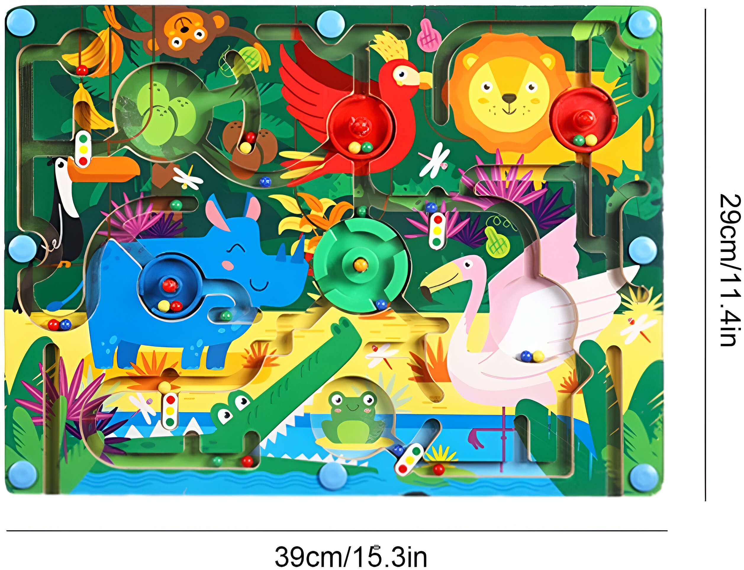Joc Montessori de Sortare Culori, Berbis, Creion Magnetic, Tip Labirint Ilustrat, din Lemn, Model Animale Salbatice, 39x29x1.5 cm