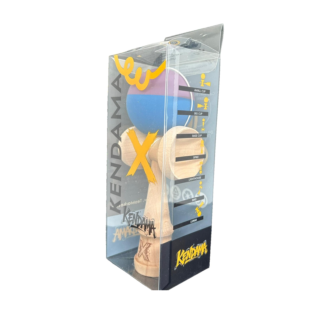 Kendama X Originala Berbis – Jucarie Interactiva profesionala din Lemn, 18 cm, Joc de Indemanare pentru Copii si Adulti, Model Bicolor Mov-Albastru