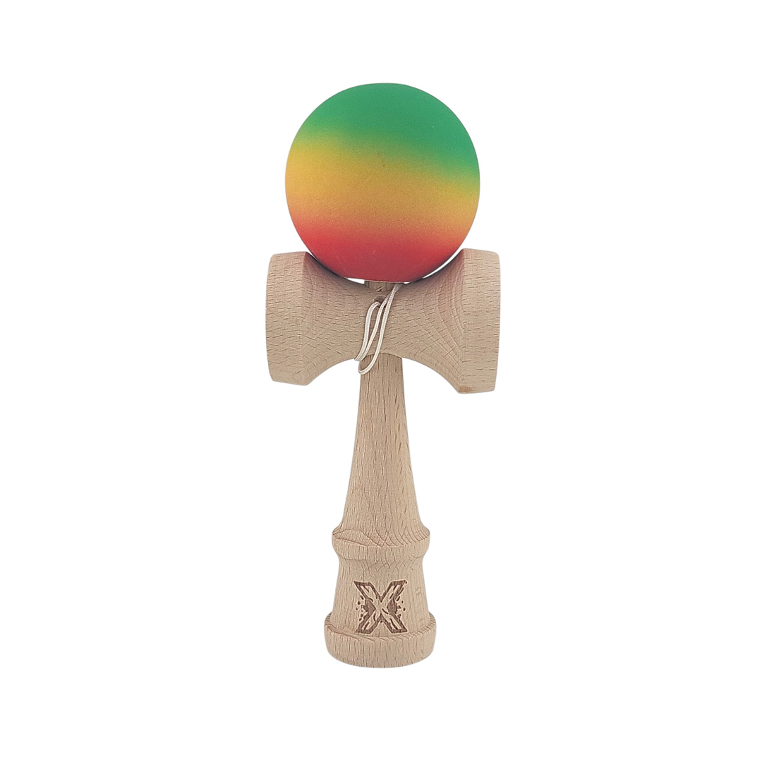 Kendama X Berbis – Jucarie Interactiva din Lemn, 18 cm, Joc de Indemanare pentru Copii si Adulti, Model 2 Verde-Galben-Rosu in Degrade