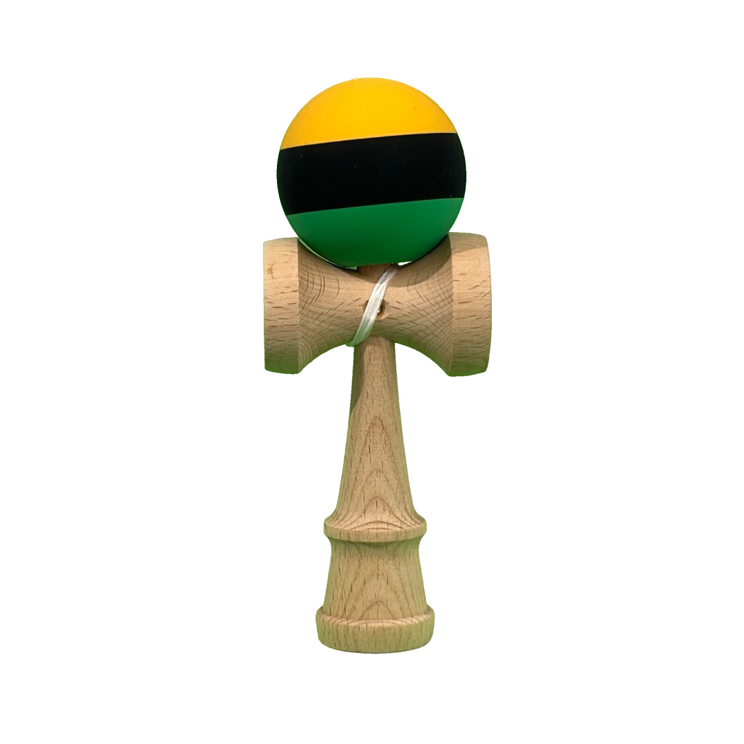 Kendama X Berbis – Jucarie Interactiva din Lemn, 18 cm, Joc de Indemanare pentru Copii si Adulti, Model Multicolor Galben-Negru-Verde