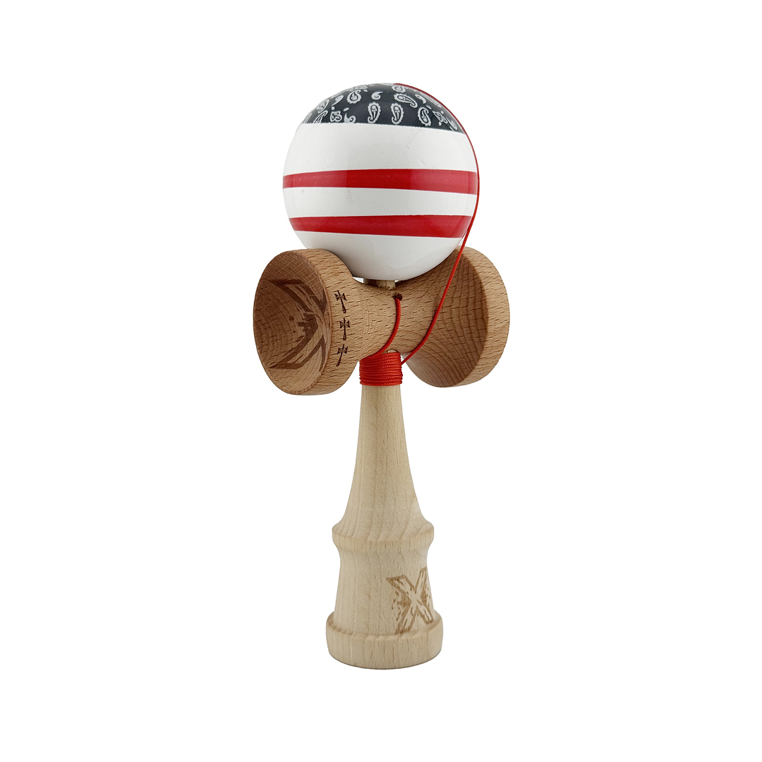 Kendama X Chicanos Originala, Model Negru / Rosu / Alb, Profesionala, Cupe Mari, Super Sticky, Rulment, Ata 55cm