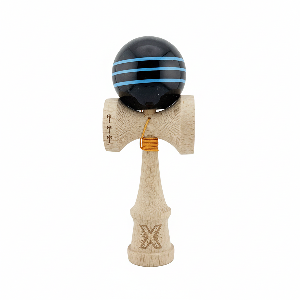 Kendama X Originala, Model Negru cu Linii Albastre Deschise, Profesionala, Legendary, Cupe Mari, Super Sticky, Rulment, Ata 55cm