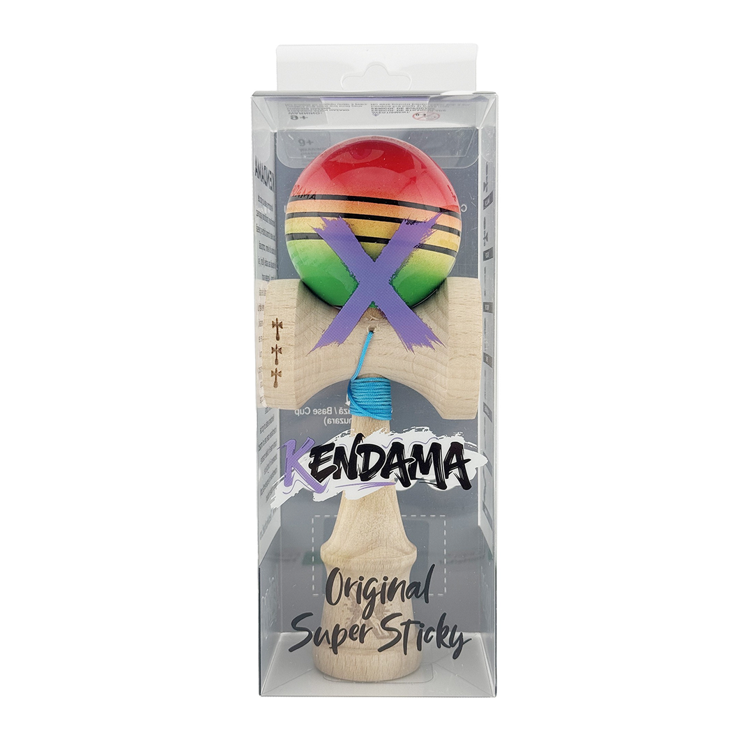 Kendama X Originala, Model Rosu / Galben / Verde in Degrade, Profesionala, Legendary, Cupe Mari, Super Sticky, Rulment, Ata 55cm