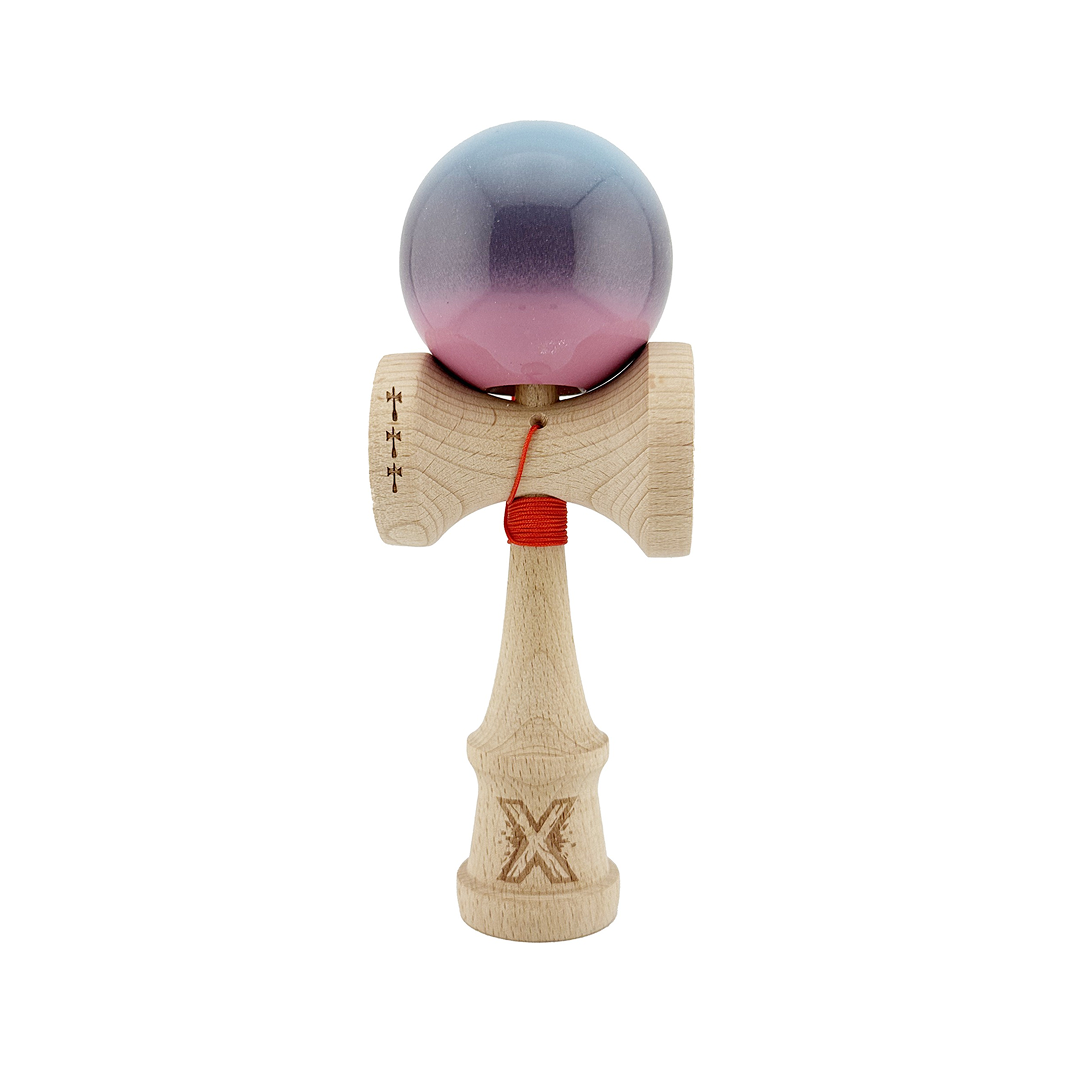 Kendama X Originala, Model Albastru Deschis / Mov / Roz in Degrade, Profesionala, Cupe Mari, Super Sticky, Rulment, Ata 55cm