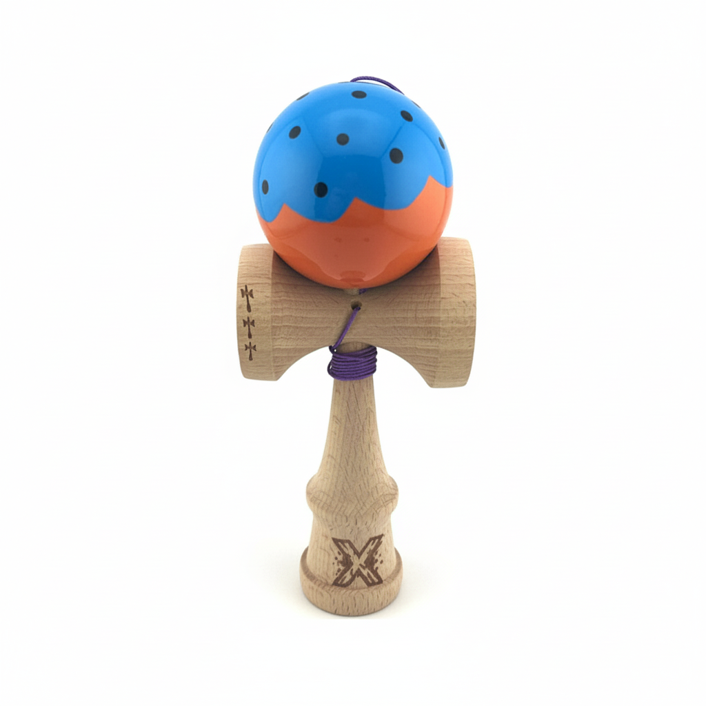 Kendama X Originala, Model Albastru / Portocaliu, Profesionala, Cupe Mari, Super Sticky, Rulment, Ata 55cm