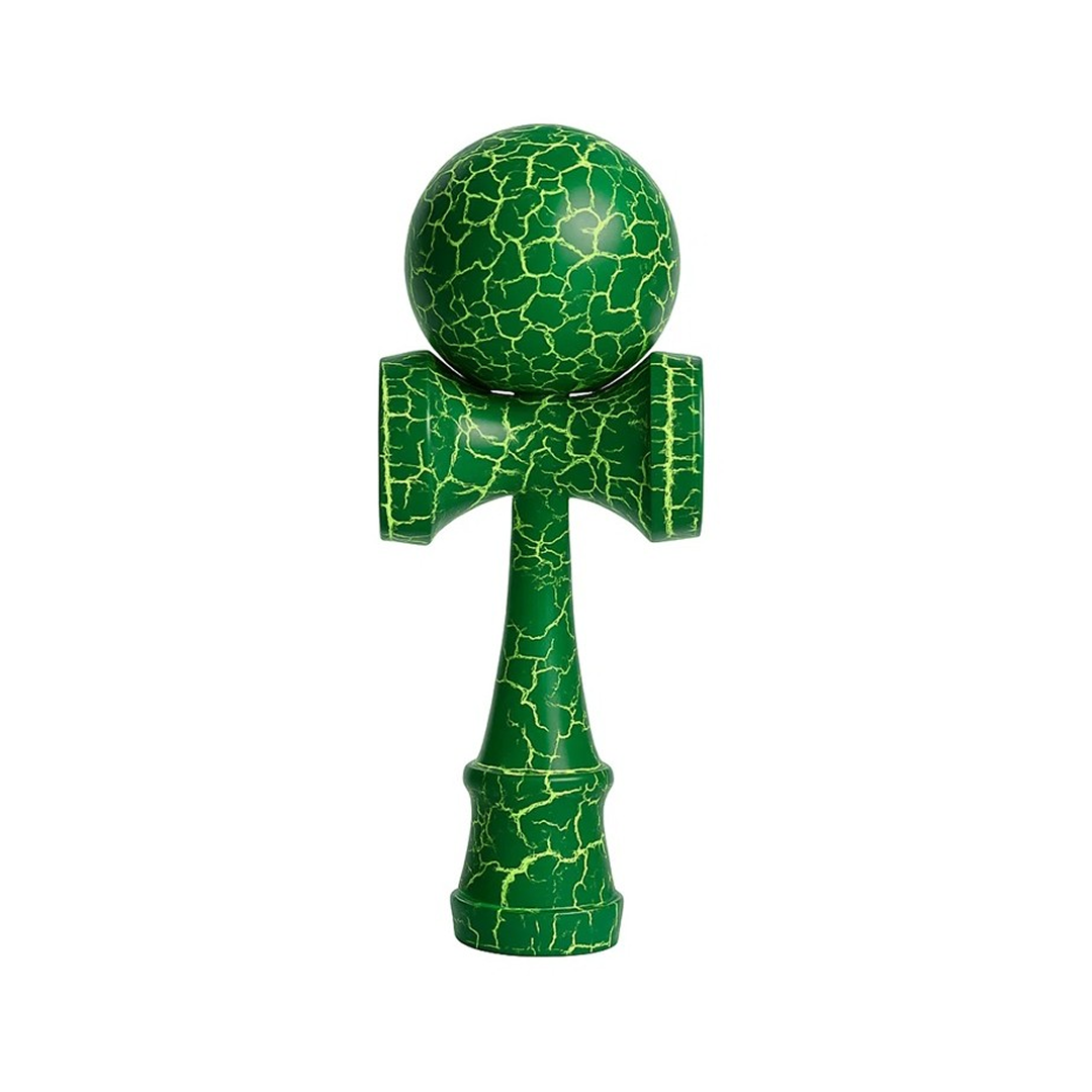 Kendama X Originala Berbis – Jucarie Interactiva din Lemn, 18 cm, Joc de Indemanare pentru Copii si Adulti, Model Cracked Verde-Alb