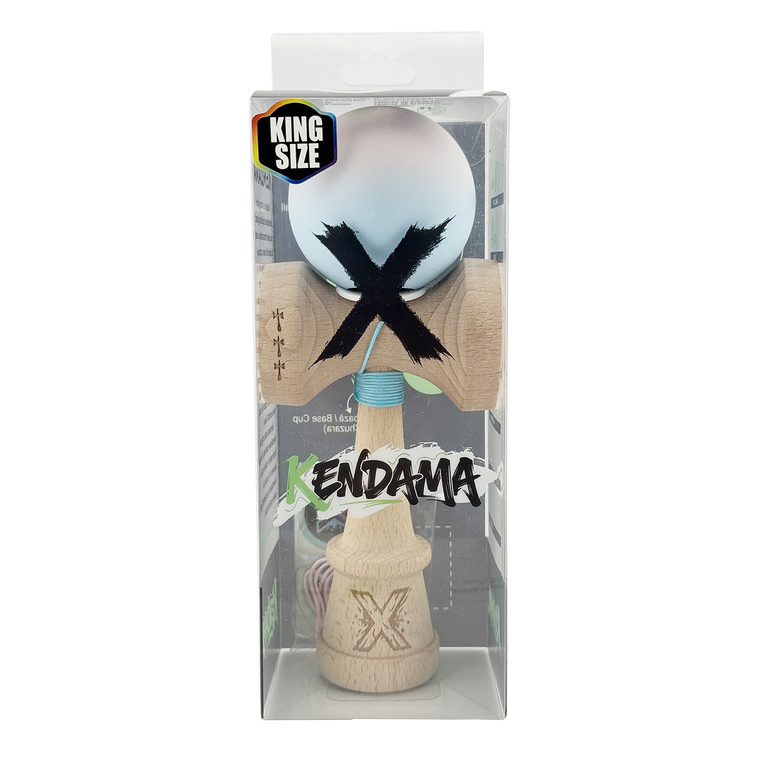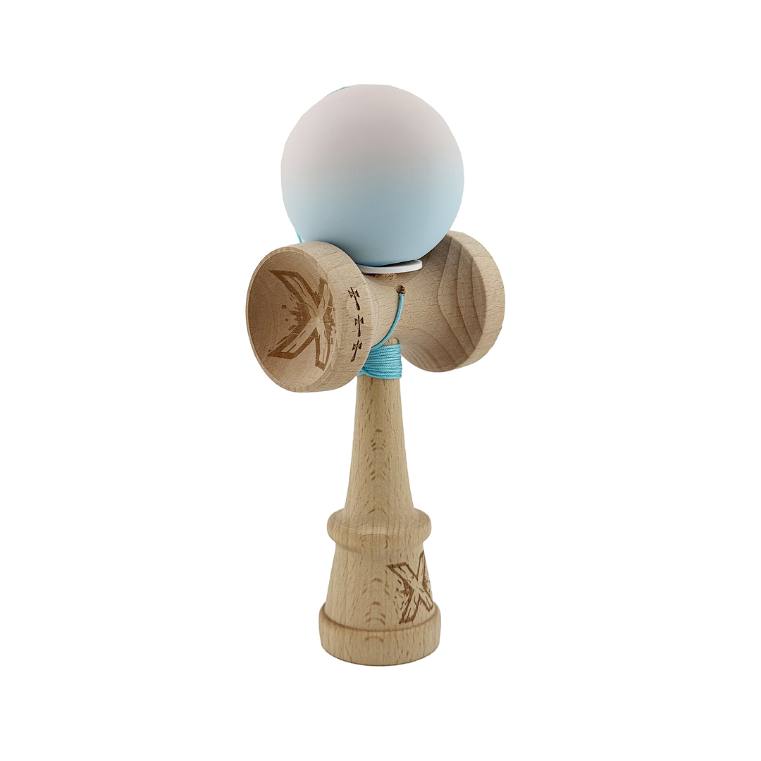 Kendama X Originala, Model V3 Lila / Turcoaz in Degrade, Profesionala, Cupe Mari King Size, Rubber Grip, Gaura in Baza, Rulment, Ata 55cm